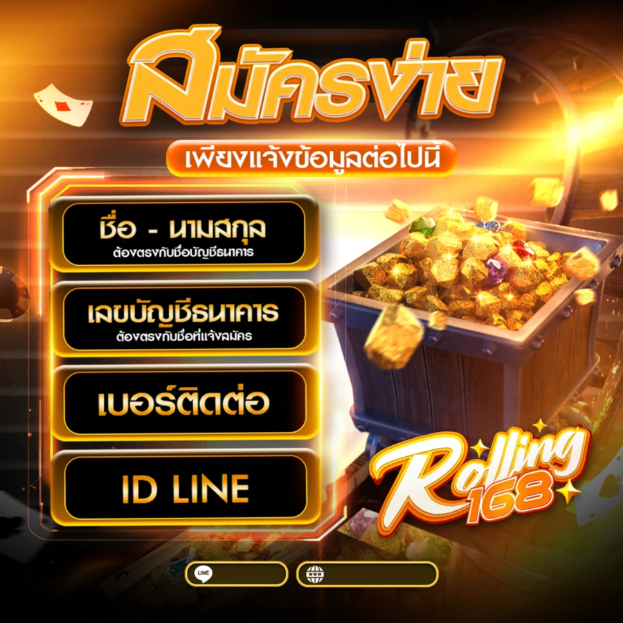 การสมัครสมาชิกกับ Rolling168 นั้นง่ายมาก ๆ เพียงแค่เข้าไปที่หน้าเว็บไซต์หลัก จากนั้นคลิกที่ปุ่ม "สมัครสมาชิก" ที่อยู่มุมขวาบนของหน้าเว็บ ระบบจะพาคุณไปยังหน้าฟอร์มสมัครสมาชิก ซึ่งคุณจะต้องกรอกข้อมูลส่วนตัวพื้นฐาน เช่น ชื่อ-นามสกุล เบอร์โทรศัพท์ บัญชีธนาคาร และอีเมล โดยข้อมูลทั้งหมดจะถูกเก็บเป็นความลับอย่างปลอดภัย