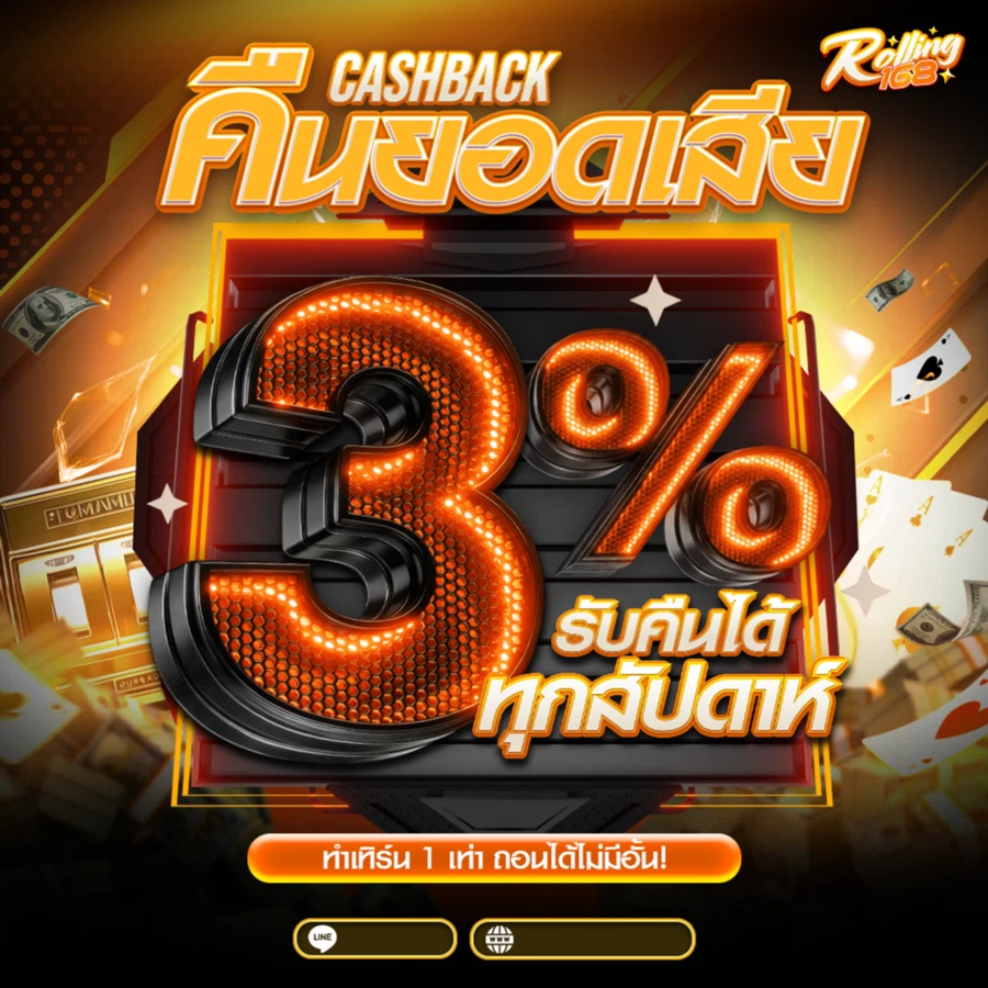 สำหรับสมาชิกที่เล่นเป็นประจำ เรามีระบบคืนยอดเสีย (Cashback) ทุกสัปดาห์สูงถึง 0.8% โดยไม่มีเงื่อนไขยอดเทิร์นโอเวอร์ เงินคืนจะเข้าบัญชีอัตโนมัติทุกวันจันทร์ และสามารถถอนได้ทันทีโดยไม่ต้องทำเทิร์น